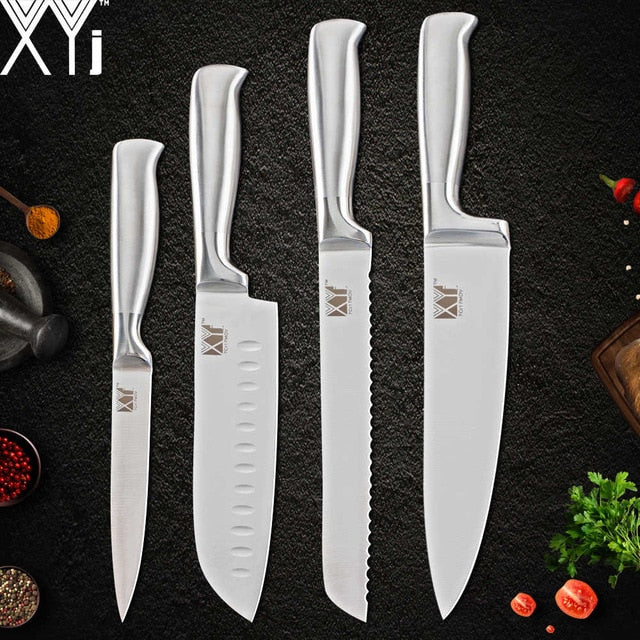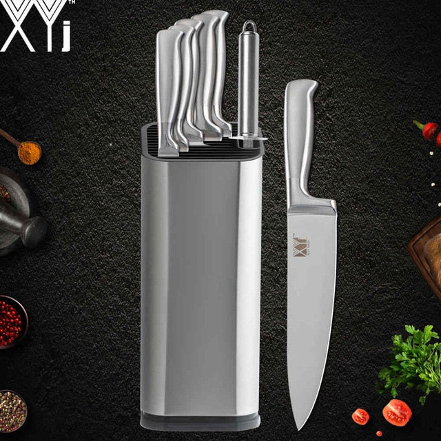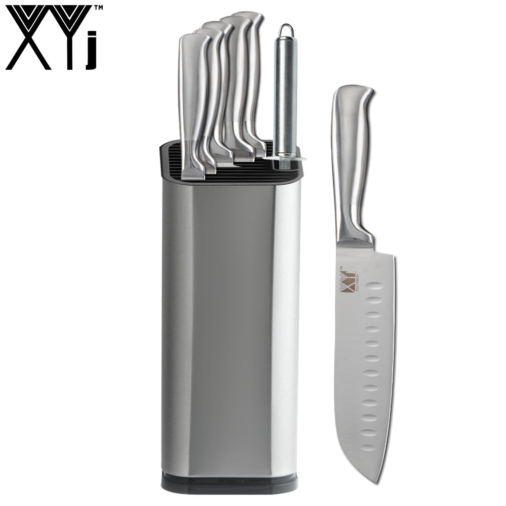 XYj Stainless Steel Kitchen Knife Set Chef Bread Slicing Santoku Utility Paring Knives Stainless Steel Knife Holder Stand